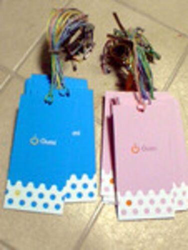 といわけで、自分たちの作った洋服につけるタグを製作。 A3ノビ1枚をプリンターで一度に20枚分刷って、 せっせと切って、せっせと穴あけて、 紐切って、結わいて、完成☆ まだ、まだ内職な日々w 街でみかけたら、御ひいきに^^