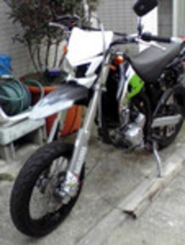 外装変更前のDトラ。 初期がダウンフェンダー装備車だったので、 フォークガードに苦労しました。 何故かって? 何故か、オークションでも中古4,000円以上し (+送料と振込み手数料いれると5,000円ぐらい?) 新品で6,000円とお高いので、 KX250のUFOフォー…